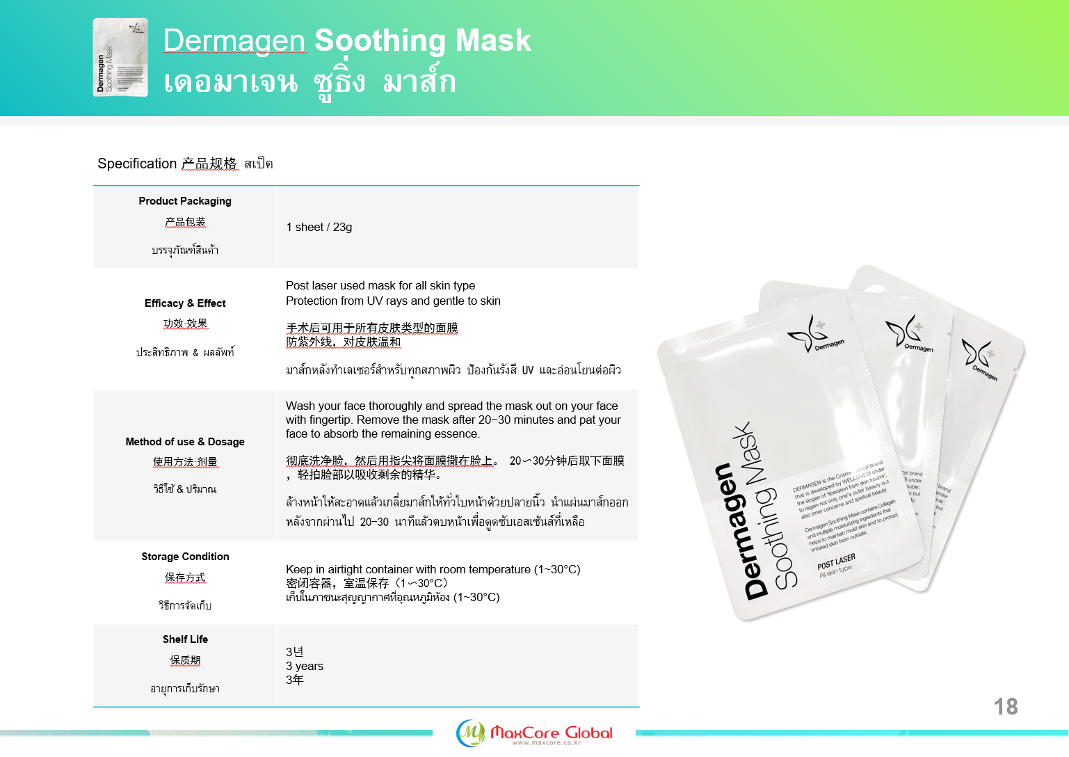 Efficacy : Quickly soothing skin after various operation, including laser operation. Less stimulating components are permeate into the damaged skin and increase moisture retention