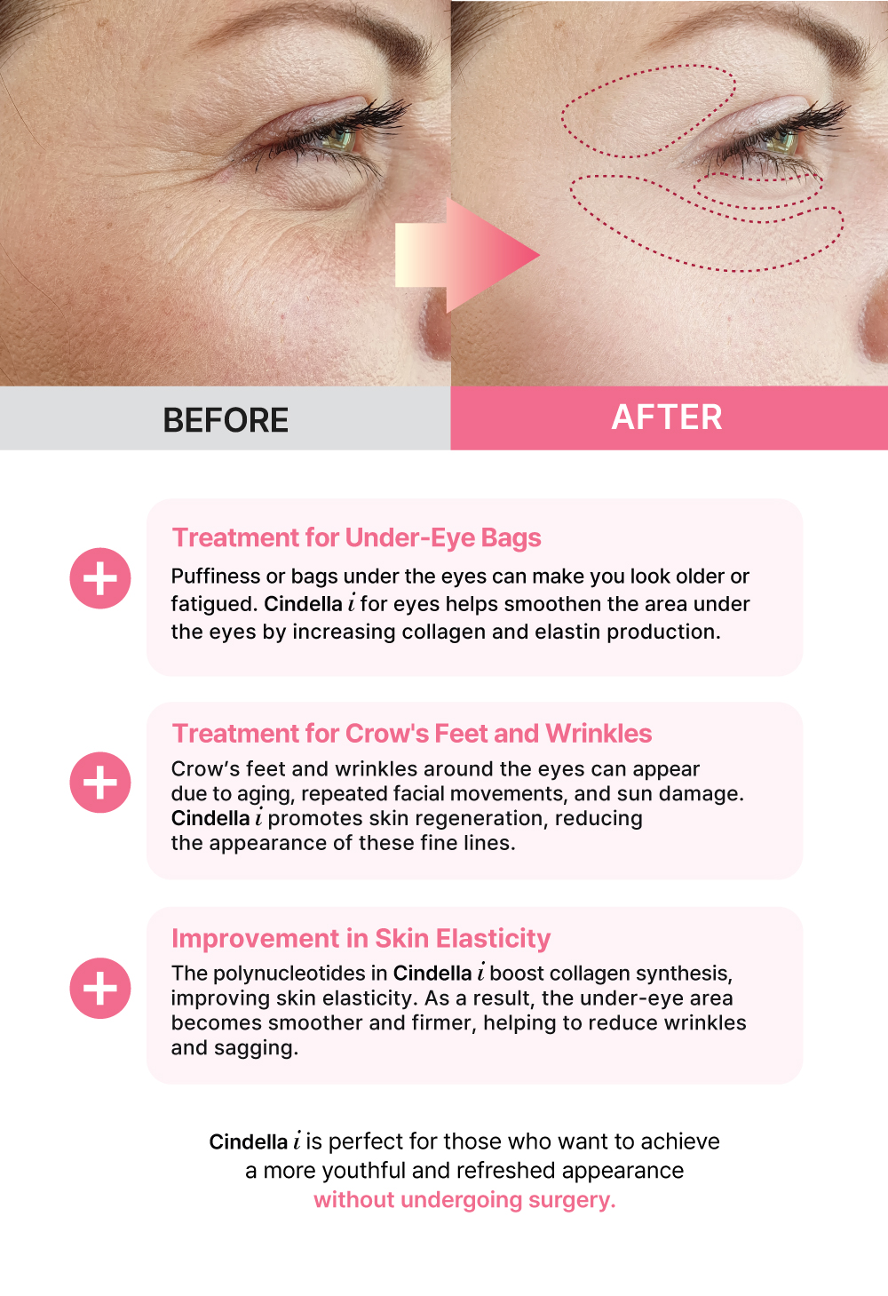 Cindella i is perfect for those who want to achieve a more youthful and refreshed appearance without sergery